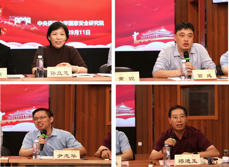 交流环节,国家安全研究院副院长孙立慧、信息工程学院院长翁彧教授、哲学与宗教学院院长尹志华教授、中国少数民族研究中心(少数民族事业发展协同创新中心)主任祁进玉教授、期刊社社长袁剑教授、苏发祥教授、李燕琴教授、郭泺教授、徐世英教授、王瑛教授、赵悦教授、刘银喜教授、金红磊副教授等全体与会导师们共同回顾了国家安全研究院的发展历程与学科建设成果,并与博士生们分享心得、传递期望。